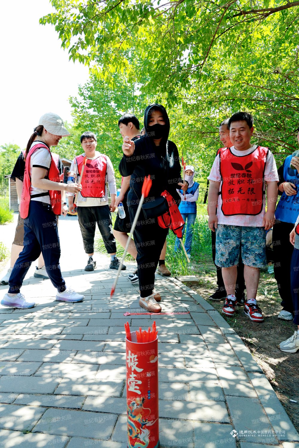 乒乓球穩(wěn)穩(wěn)落進(jìn)終點(diǎn)容器的清脆聲響剛消散,隊(duì)員們便火速奔向下一挑戰(zhàn)——古雅的投壺任務(wù)點(diǎn)。青銅壺靜靜佇立,箭矢泛著冷光,古韻與競技的火花在此刻碰撞。抵達(dá)場地后,大家迅速切換狀態(tài),有人化身“神射手”,瞇眼瞄準(zhǔn)壺口;有人分享技巧,調(diào)整投擲角度。“嗖!”箭矢破空而出,或精準(zhǔn)入壺引發(fā)歡呼,或擦邊滑落惹來嘆息。在傳統(tǒng)與現(xiàn)代交融的趣味中,團(tuán)隊(duì)成員們互相鼓勵、反復(fù)嘗試,將力量與巧勁完美結(jié)合,用歡聲笑語續(xù)寫這場徒步挑戰(zhàn)的精彩篇章!